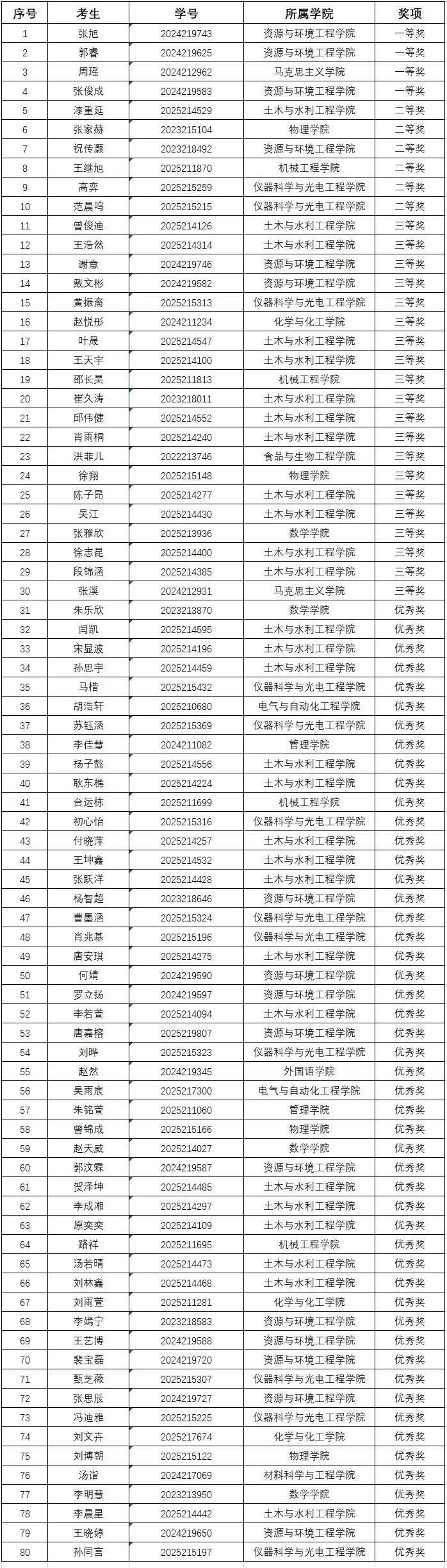 根据合肥工业大学安全教育测试系统第八届国家安全知识竞赛栏目数据统计,本次参赛学生共计1196名,按照得分和答题时间等原则进行成绩评定,共评出获奖学生80人,其中一等奖4人,二等奖6人,三等奖20人,优秀奖50人,现将获奖名单予以公布。