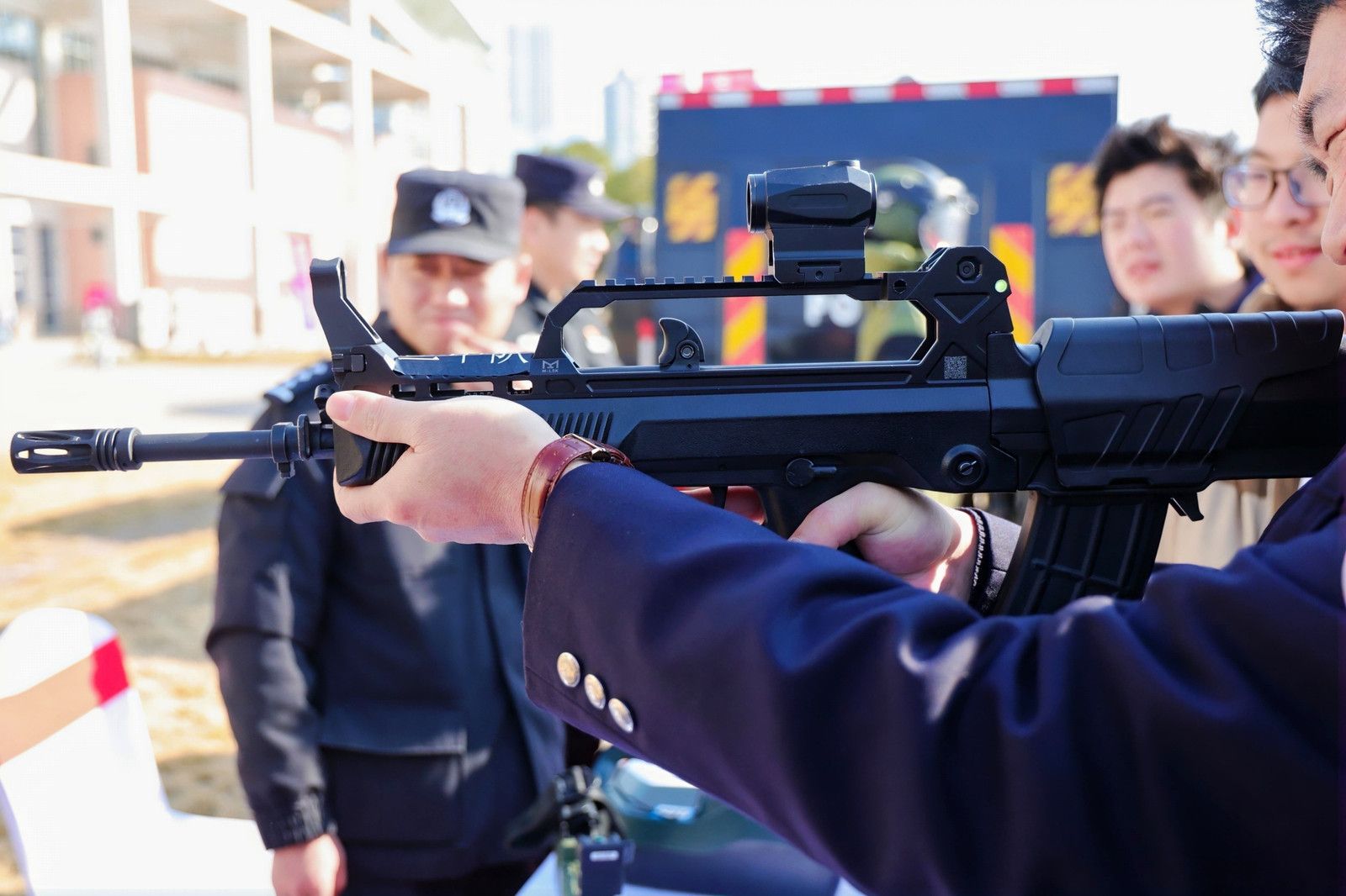 活动中,民警现场模拟突发涉恐警情,开展“最小作战单元”实战演练,让师生近距离感受到反恐队伍的战斗素养与实战能力。